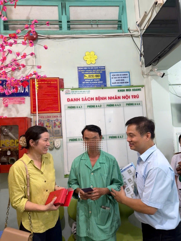 Tiếp nối hoạt động ý nghĩa này, ngày 13/02/2026, Bệnh viện Tai Mũi Họng tiếp tục đón nhận sự chung tay, sẻ chia của các mạnh thường quân với việc trao tặng thêm 10 bao lì xì, mỗi bao trị giá 500.000 đồng (Năm trăm ngàn đồng tiền mặt) cho người bệnh đang điều trị nội trú. Đồng thời, bệnh viện cũng trao 52 phần quà đến tất cả người bệnh đang điều trị nội trú trong dịp đầu năm mới, nhằm động viên tinh thần và chia sẻ khó khăn cùng người bệnh.