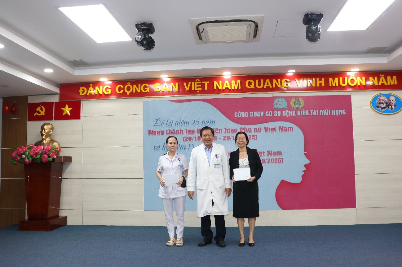 Nhằm kỷ niệm 95 năm ngày thành lập Hội Liên hiệp Phụ nữ Việt Nam (20/10/1930 – 20/10/2025) và kỷ niệm 15 năm ngày Phụ nữ Việt Nam (20/10/2010 – 20/10/2025), chiều ngày 17/10/2025, Công đoàn Bệnh viện Tai Mũi Họng đã long trọng tổ chức chuỗi hoạt động tri ân, tôn vinh những đóng góp của nữ viên chức, người lao động với nhiều nội dung ý nghĩa, thiết thực.