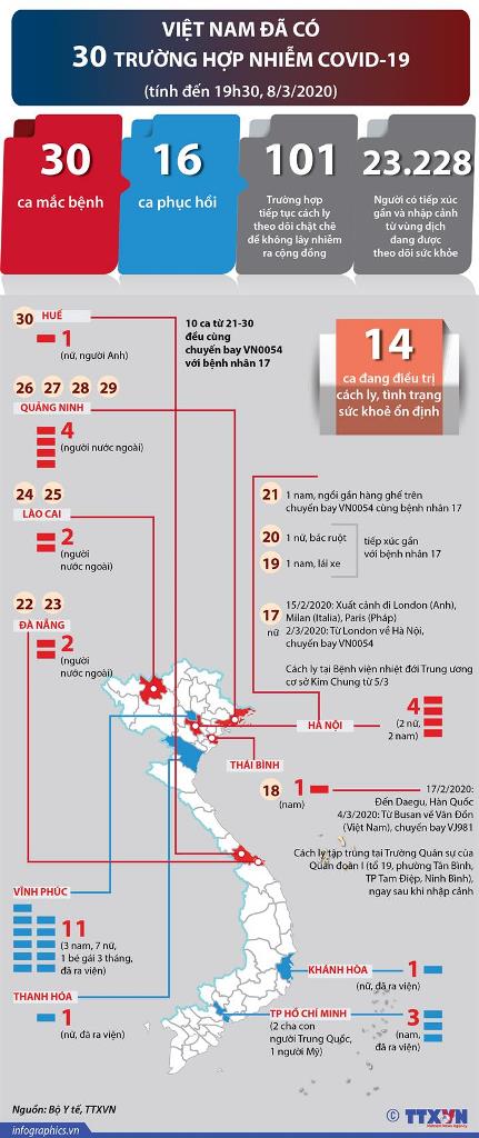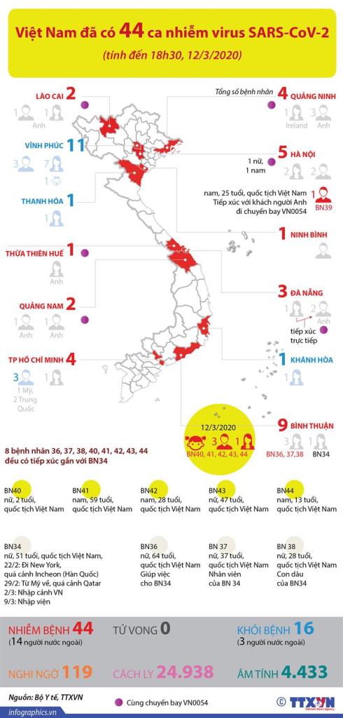 Đọc thêm >>Trong 2 ngày 14-15/3/2020, Việt Nam đã ghi nhận thêm 13 bệnh nhân nhiễm Covid-19. Trong đó, có thể chia làm các nguồn lây sau: I. LIÊN QUAN ĐẾN BỆNH NHÂN 34 Bệnh nhân 45 là nam ở phường 7, quận Tân Bình, TP.HCM, bệnh nhân này đã ăn tối và làm việc với vợ […]