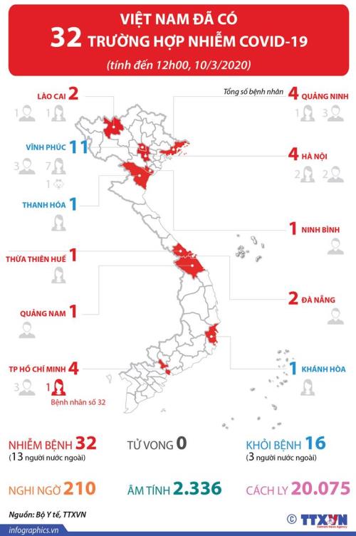 Đọc thêm >>Tính đến 12g00 ngày 10/3/2020, Việt Nam đã ghi nhận thêm 2 bệnh nhân nhiễm Covid-19. Trong đó: Bệnh nhân thứ 31 bệnh nhân nam, 49 tuổi, quốc tịch Anh, cùng đi trên chuyến bay VN0054 với bệnh nhân thứ 17. Bệnh nhân đang được điều trị tại Bệnh viện Bắc Quảng Nam, tình trạng […]