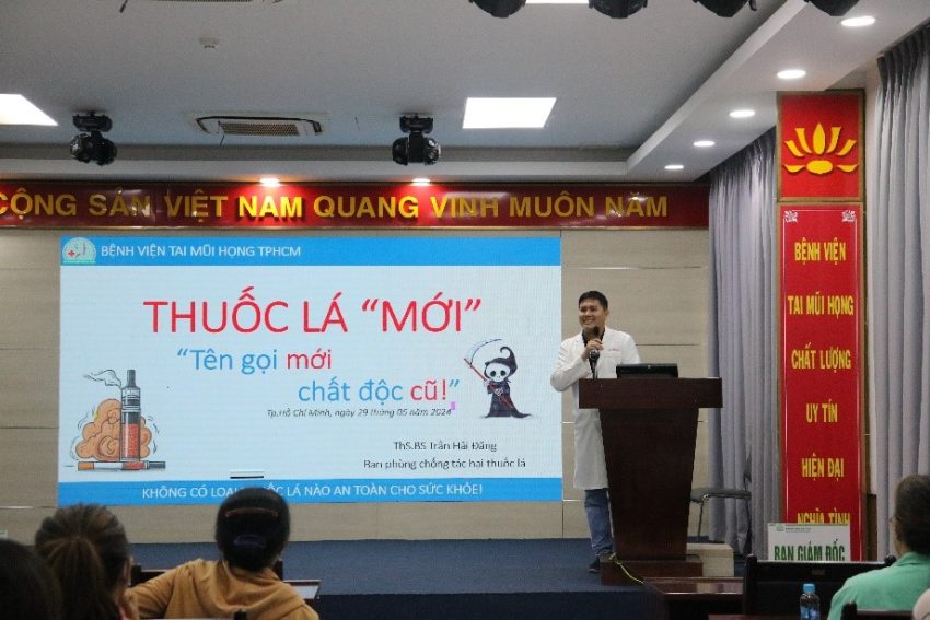Hưởng ứng ngày thế giới không thuốc lá, sáng ngày 29/5/2024 bệnh viện Tai Mũi Họng TPHCM đã tổ chức buổi truyền thông giáo dục sức khỏe cho người bệnh và người nhà người bệnh về phòng chống tác hại thuốc lá với chủ đề “Thuốc lá MỚI – Tên gọi mới, chất độc cũ”