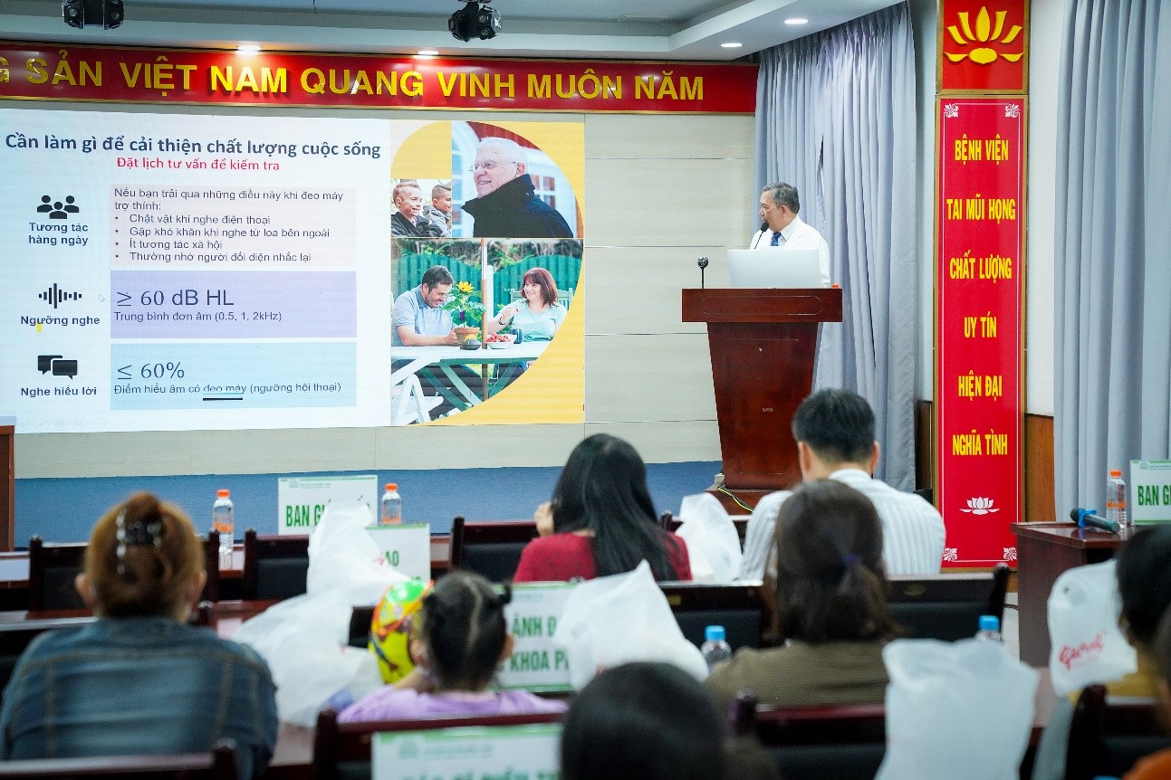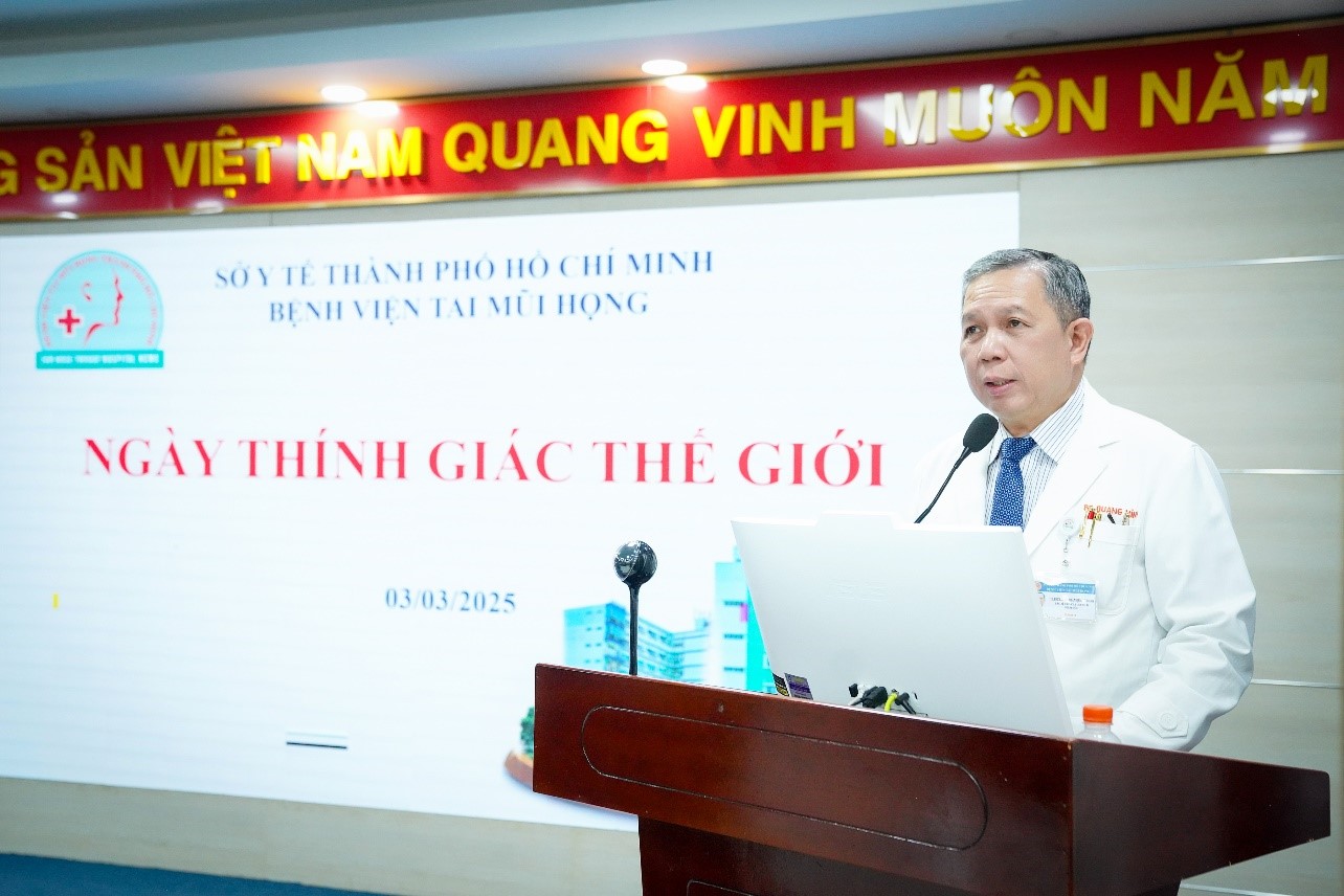 Trong chương trình kỷ niệm ngày Thính giác Thế giới (3/3) diễn ra tại Bệnh viện, TS. Bs CK II Lê Trần Quang Minh- Giám đốc BV Tai Mũi Họng chủ trì khai mạc sự kiện kỉ niệm Ngày Thính giác Thế giới và báo cáo chuyên đề “Tiêu chuẩn chăm sóc bệnh nhân nghe kém người lớn”. Chia sẻ tại chương trình kỷ niệm ngày Thính giác Thế giới TS. Bs CK II Lê Trần Quang Minh cho biết “Ước tính trên toàn cầu hiện có khoảng 1,1 tỷ người trong nhóm tuổi thanh thiếu niên đang mắc các bệnh lý về thính giác do lạm dụng các thiết bị công nghệ. Đây là vấn đề nghiêm trọng có thể ảnh hưởng đến chất lượng sống của cộng đồng”. Có nhiều tác nhân ảnh hưởng đến thính giác của bệnh nhân trong đó có bệnh lý điếc bẩm sinh, tiếp đến là các bệnh do viêm tai giữa, viêm tai xương chũm, điếc đột ngột do bệnh lý, giảm thính lực do tuổi tác, mất thính giác do tai nạn…