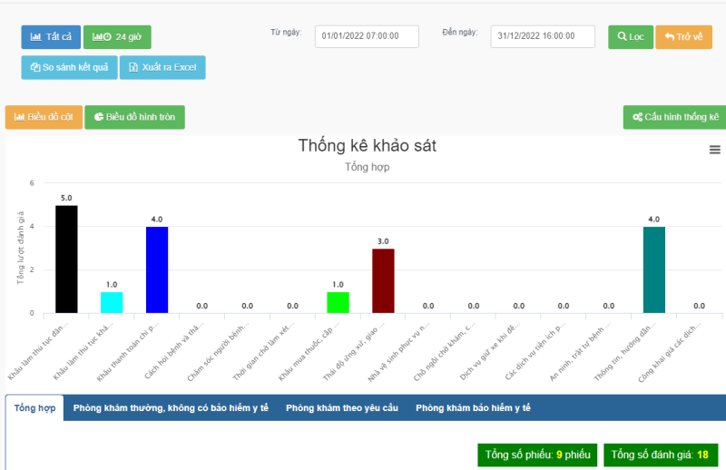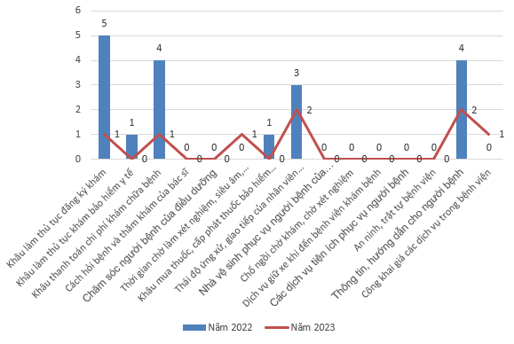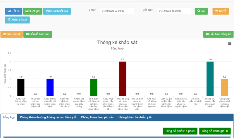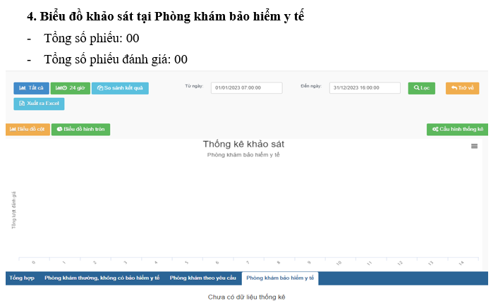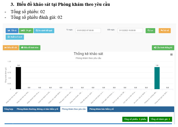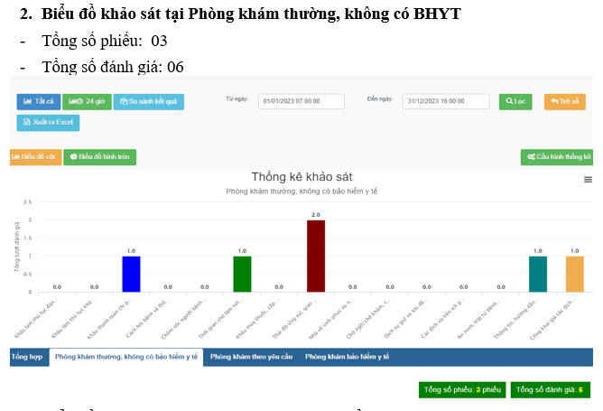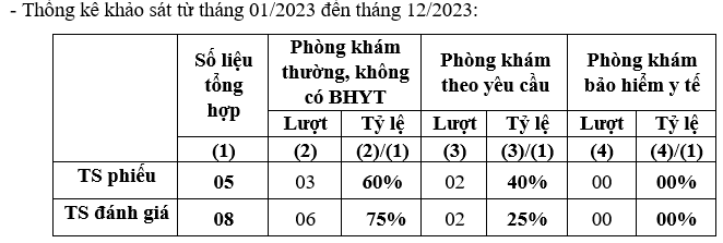 – Căn cứ kết quả thực tế sau khi triển khai lắp đặt ki-ốt khảo sát nhanh sự không hài lòng người bệnh của Sở Y tế tháng 05/2017 và thực trạng của bệnh viện Tai Mũi Họng. Phần mềm tổng hợp kết quả của hệ thống ki-ốt khảo sát không hài lòng của người bệnh tại khoa Khám bệnh cho biết trong năm 2023 ghi nhận có 05 phiếu và 08 đánh giá.