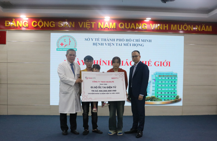 Bệnh viện Tai Mũi Họng TP HCM phối hợp các nhà tài trợ hỗ trợ 2 bộ ốc tai điện tử, 8 máy trợ thính cho người bệnh và trẻ có hoàn cảnh khó khăn