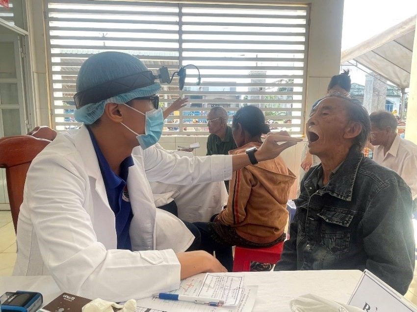 Các bác sĩ Đoàn Bệnh viện Tai Mũi Họng khám tầm soát bệnh lý Tai Mũi Họng cho người dân