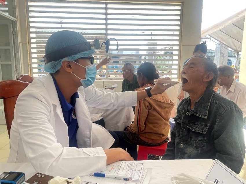 Các bác sĩ Đoàn Bệnh viện Tai Mũi Họng khám tầm soát bệnh lý Tai Mũi Họng cho đồng bào dân tộc tại xã Phú Văn, huyện Bù Gia Mập, tỉnh Bình Phước