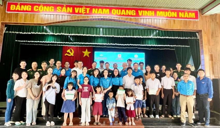 Đại diện 38 bé là con chiến sĩ Đoàn Kinh tế Quốc phòng 778 nhận học bổng do Cụm thi đua số 5 – Công đoàn Ngành y tế trao tặng