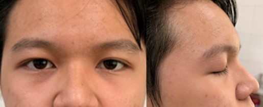 Hình: Bệnh nhân sau phẫu thuật 3 ngày, vùng trán và mắt phải đã hết sưng hoàn toàn.
